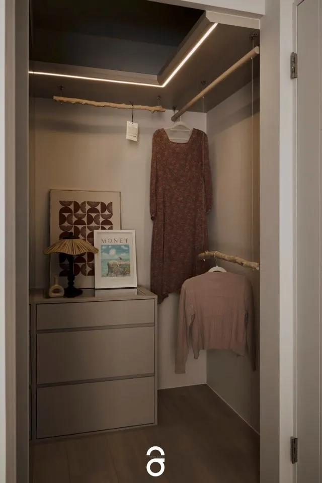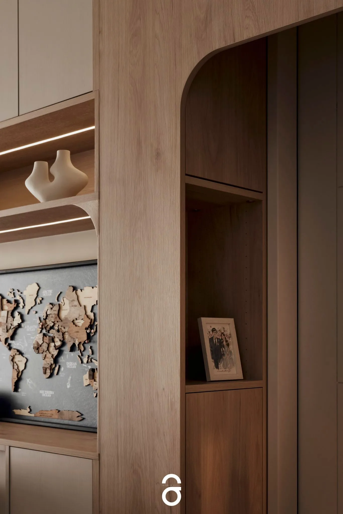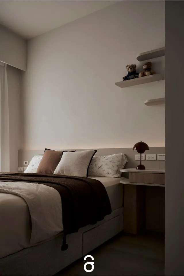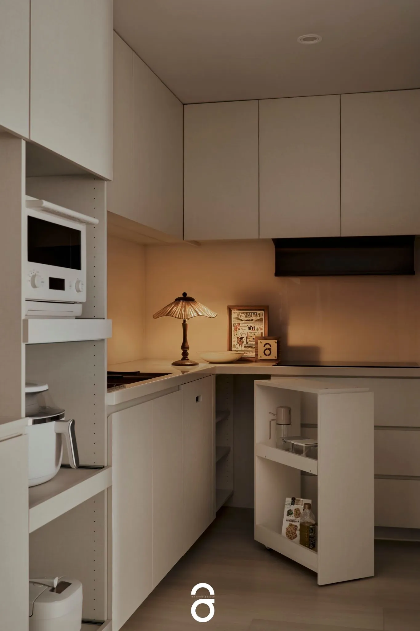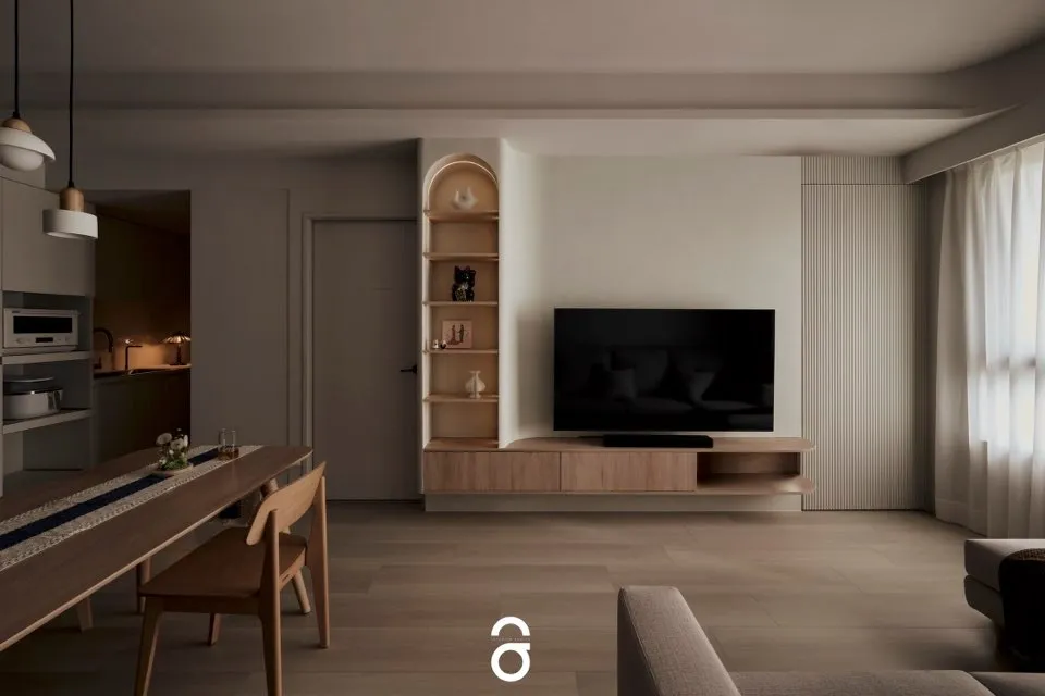 午後的光靜靜灑落,映著兩人生活的節奏,在這座小宅裡,日常自有它的風景。 光影在木色與白牆間流動, 柔和了空間,也柔和了生活的步調。 這個空間為一對夫妻量身打造,以「簡約舒心、溫潤木色」作為主軸, 透過流暢動線與完整收納,讓15坪的小宅也能自在呼吸。 在不浪費每一吋空間的同時,也留給生活從容與光影穿梭的餘地。 設計亮點 。整合式餐廚:開放空間讓餐桌成為家的核心,串連生活動線 。柔光調性:淺灰×溫木色×白,構築靜謐氛圍 。高效收納:入口與公領域以立面收納串連,保持整潔視覺 ——— 空間資訊 設計風格:日式北歐×溫潤留白 裝修性質:新成屋空間坪數:15坪居住成員:夫妻兩人 設計總監:UNA